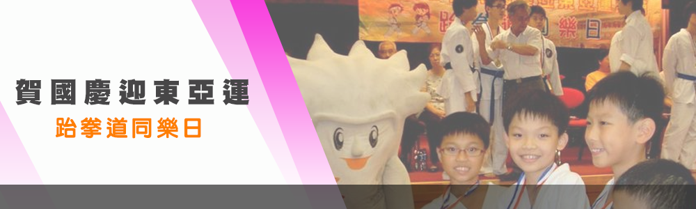 賀國慶迎東亞運跆拳道同樂日2009年8月30日各項比賽 賀國慶迎東亞運跆拳道同樂日 由觀塘體育促進會主辦、觀塘區議會贊助為本區支持香港2009東亞運動會,這項規模龐大的國際綜合性運動會首次在香港舉行,將大大促進本地的體育發展,呼籲香港市民全力支持這項盛事。促進觀塘區跆拳道選手之情感交流提升跆拳道運動水準並達成全民運動為目的。亦是全港首次以【跆拳道】為主題活動的同樂日。日期﹕2009年8月30日(星期日)地點﹕觀塘翠屏社區中心 標籤# 賀國慶迎東亞運跆拳道同樂日 Previous 文章 2009全港18區跆拳道慈善金盃賽 Next 文章 2009年度暑期班組畢業典禮表演