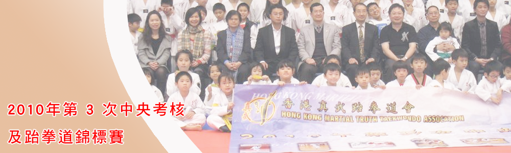 2010年第 3 次中央考核及跆拳道錦標賽2011年1月9日中央考核 2010年第 3 次中央考核及跆拳道錦標賽 日期: 2011年1月9日(星期日)時間: 上午10時至晚上7時地點: 官塘振華道體育館(主場) 出席嘉賓: 香港聖約翰救傷隊助理總監 少青團指揮官 范強醫生(Dr.Fee)明愛白英奇專業學校校長 關清平教授觀塘區家長教師聯會主席 奚炳松主席大嶼山警區少年警訊會長 鄺智航會長香港教育工作者聯會執行總監 英汝興執行總監葵青區議會 許建芹議員工聯會社區幹事 劉美璐小姐 在始感謝每一個教練、裁判、嘉賓、學員、家長及所有工作人員。 Previous 文章 2010年第 3 次中央考核及跆拳道錦標賽 Next 文章 真武賀新歲燒烤同樂日